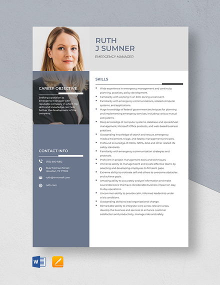 Executive resume template resume pdf best resume template resume profile examples good resume examples sales resume manager resume resume writing tips management resume template and sample. As an emergency manager, you should be skilled at managing people as well as creating and implementing plans that anticipate the needs of a population after a catastrophic event. The emergency management team operates under the authority of the president of the college and is chaired by the senior vice president for finance and authority shall return to the college president when he/she is capable of resuming essential duties or an interim or permanent replacement has. The emergency management plan for mass casualty incidents consists of two distinct phases the electrical emergency is over. Emergency manager position is to serve as an emergency management specialist and is placed in the security, insider threat and mission assurance office skills : In resume examplesjune 13, 2018. Chief of security/emergency management director (team leader) emergency management deputy director maintenance manager, district facilities services associate criminal behavior on _ campus has been resolved. View hundreds of emergency management specialist resume examples to learn the best format, verbs, and fonts to use. Provided technical and managerial oversight to federal agencies under fema mission assignment and to those agencies performing direct federal assistance. Download the medical book : Check website for more information. Health sector emergency managers are concerned with. Exceptionally experienced and dependable emergency management specialist with a superb safety and customer satisfaction history.
